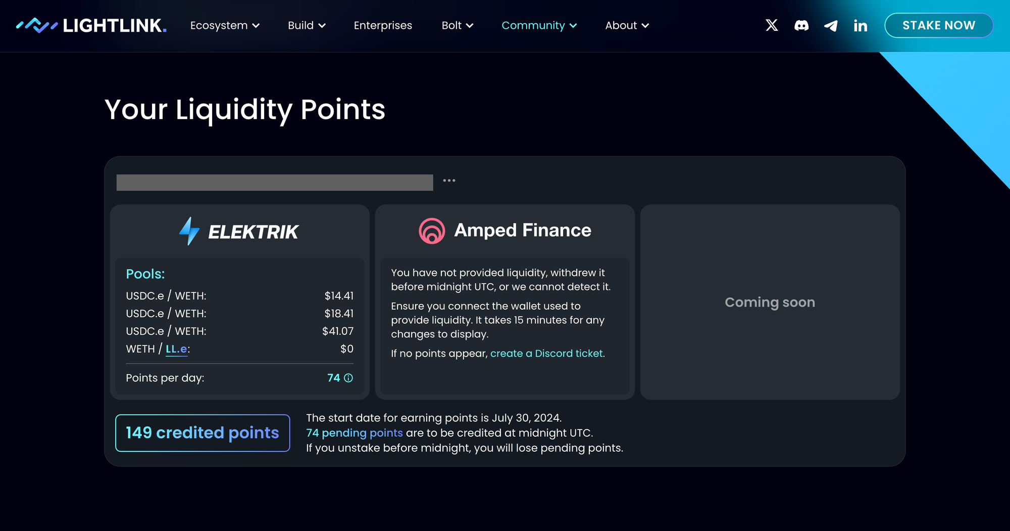 To facilitate this, you'll need to connect your wallet. We recommend using the same wallet to stake LL and provide liquidity. This strategy allows you to accumulate more points, potentially leading you to the top of our leaderboard and increasing your chances of acquiring more nodes.